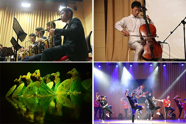 在街舞團(tuán)·合唱團(tuán)專場(chǎng)中,合唱團(tuán)用阿卡貝拉的演繹形式表演了《海闊天空》和《夜空中最亮的星》;街舞團(tuán)展示了Jazz、Poppin、Hiphop、Locking和Breaking五種類型的街舞表演。在民樂(lè)·金話筒團(tuán)專場(chǎng)中,民樂(lè)團(tuán)演奏了《光明行》《花好月圓》等傳統(tǒng)器樂(lè)合奏,以及由團(tuán)員們自己編排的《涼涼》《大魚(yú)》《Let it go》等現(xiàn)代風(fēng)格的樂(lè)曲;金話筒團(tuán)帶來(lái)了精心準(zhǔn)備的《玉葉冠》《閃耀吧青春的火光》《雷雨》等節(jié)目。在“瞬舞傾城”舞蹈團(tuán)專場(chǎng)中,舞蹈團(tuán)帶來(lái)了《花兒為什么這樣紅》《輕青草原》等民族舞展示,并用現(xiàn)代舞的形式演繹了《那個(gè)世界那個(gè)我》《時(shí)間都去哪了》《花開(kāi)時(shí)節(jié)》等節(jié)目。在“電影時(shí)光機(jī)”的專場(chǎng)演出中,管樂(lè)團(tuán)演奏了經(jīng)典電影主題曲《美女與野獸》《千與千尋》《指環(huán)王》,弦樂(lè)團(tuán)帶來(lái)了《泰坦尼克號(hào)》《肖斯塔科維奇第二圓舞曲》《The Pirates of Caribbean》等經(jīng)典曲目。在藝術(shù)展演閉幕式暨話劇專場(chǎng)演出中,話劇團(tuán)表演了精心準(zhǔn)備的經(jīng)典話劇《青蛇》。各個(gè)專場(chǎng)上,環(huán)環(huán)相扣的劇情和演員精湛的演技,展現(xiàn)了石大學(xué)子優(yōu)秀的舞臺(tái)表現(xiàn)力。