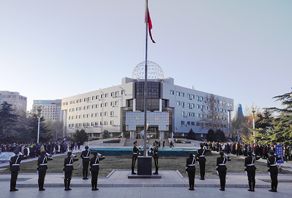 12月9日,石大舉行紀念“一二·九”運動83周年升旗儀式,近1000名師生參加了升旗儀式。