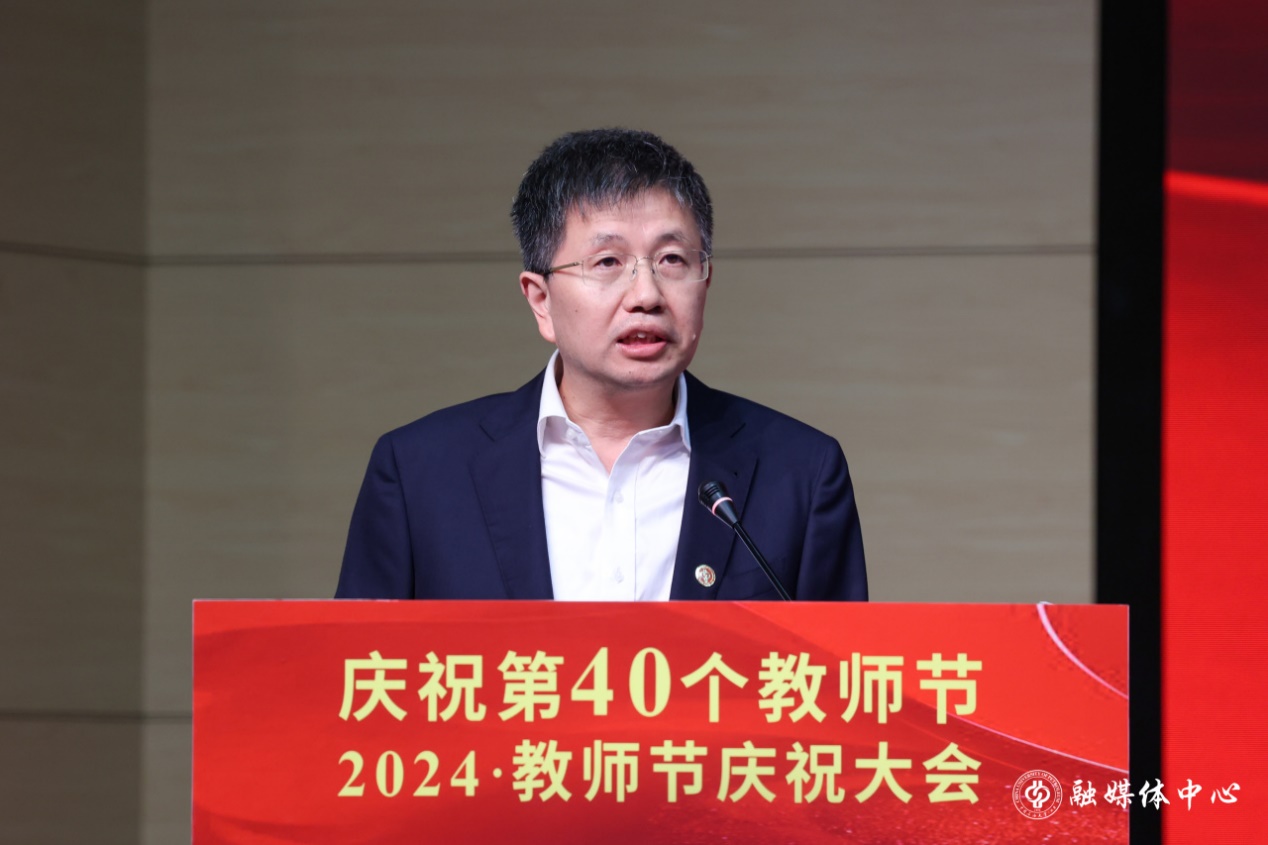 王同奇代表學校黨委向全校教師提出了殷切期望。他指出,學校正處于搶抓戰略機遇和推動高質量發展關鍵期,面臨時代使命更重、辦學空間增大、發展賽道拓寬的新形勢。希望廣大教師:一是要堅定信念守初心,擔當“大使命”。將胸懷天下的價值理想追求與實現中華民族偉大復興結合起來,將教育家精神融入落實立德樹人根本任務,把“躬耕教壇、強國有我”落到實際行動中,強化對青年學生的政治引領、價值引領,確保黨的事業和社會主義現代化強國建設后繼有人,在至誠報國的“大我”追求中實現個人理想抱負。二是要明德修身長才干,砥礪“大德行”。要自覺砥礪品行、用優良德行,樹立教師的崇高形象,引導學生走好成長的每一步。要苦練育人本領,樹立終身學習的理念,以使自己擁有源源不斷的力量源泉,時刻為學生提供鮮活的成長清泉。三是要躬體力行勇擔當,展現“大作為”。站在知識發展前沿,遵循教育規律和人才成長規律,在潛心教書育人、勇攀學術高峰、弘揚人間正道上彰顯擔當、展現作為,在推動學校事業高質量發展的新征程上開拓新路、再創佳績。