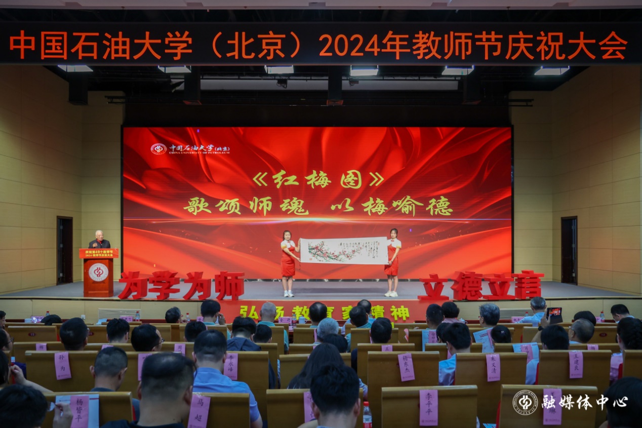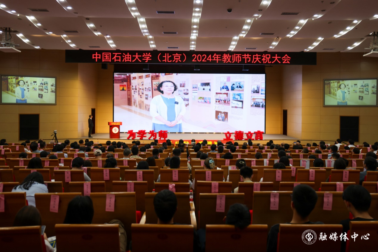 9月10日下午,中國石油大學(北京)2024年教師節慶祝大會在中油大廈三層報告廳隆重舉行。校領導王同奇、金衍、鮑志東、韓克飛、文永紅、劉植昌、張廣清與受表彰教師代表、榮休教師代表、全體處級干部、全體新入職教師、一線教師代表和學生代表500余人歡聚一堂,共同見證中石大教師的光榮時刻,克拉瑪依校區干部及師生代表在分會場通過線上參會。校長金衍主持慶祝大會。