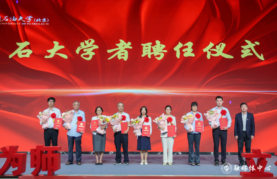大會對2022年以來入選高層次人才項目的教師,榮獲教育教學類和科學研究類獎項的教師,獲得首都勞動獎章、育人先鋒等榮譽的老師,學校2022-2024年度先進集體的單位及先進個人的教職工以及從事教育工作滿30年的教師代表進行了表彰,校領導為受到表彰的教師代表獻花并頒發證書。樊建春教授等75人新聘為石大學者,金衍為石大學者代表頒發聘書。