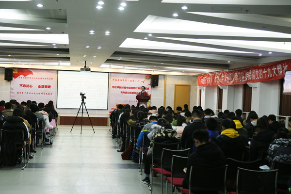 12月6日,中國(guó)石油大學(xué)團(tuán)學(xué)干部學(xué)習(xí)十九大精神專題報(bào)告會(huì)在學(xué)生活動(dòng)中心410報(bào)告廳舉行。石大學(xué)習(xí)宣傳貫徹黨的十九大精神宣講團(tuán)成員、馬克思主義學(xué)院教師曹培強(qiáng)作了題為“新時(shí)代中國(guó)青年的初心與擔(dān)當(dāng)”的宣講報(bào)告,學(xué)校150余名團(tuán)學(xué)干部聆聽(tīng)了報(bào)告。