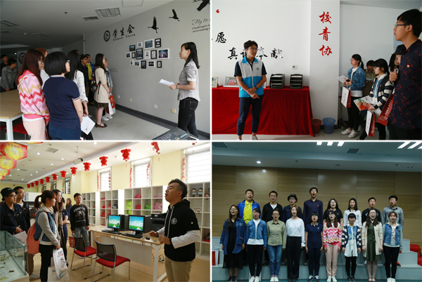 在參觀環節,師生代表們參觀了校級學生組織的活動場地和大學生就業創業技能訓練基地。校學生會、研究生會、社團聯合會、團委新聞中心、青年志愿者協會、大學生藝術團以及基地負責人分別向青年師生代表介紹了學生組織功能、特色亮點活動、訓練基地運營情況以及可向學生開放共享的資源。