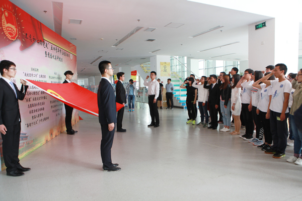 在學生活動中心一層,學生代表面向團旗重溫入團誓詞,喚起每一位團員的“團”意識,讓他們體會作為一名團員的神圣使命,時刻牢記自己是一名共青團員,自覺加強組織性、紀律性,團結性和先進性。