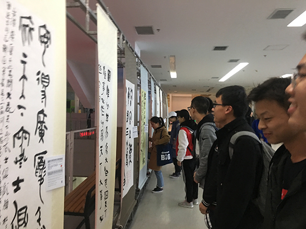 10月31日至11月2日,由團中央學校部主辦的“習語金句·百校千言——當代書法名家進高校翰墨巡展”走進中國石油大學,向石大師生展示了當代中國二十余位著名書法家以不同字體撰寫的習近平總書記用典金句100余幅,包含敬民、為政、修身、任賢、天下、法治等內容。