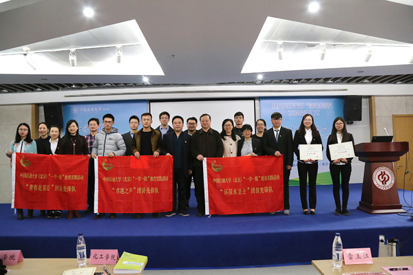 團(tuán)委書記周玉成為2016年團(tuán)中央“活力團(tuán)支部”獲獎支部頒發(fā)證書。雷玉江為2017年“活力提升”工程輔導(dǎo)員頒發(fā)聘書,為首批“一學(xué)一做”教育實踐活動團(tuán)員先鋒隊授旗。