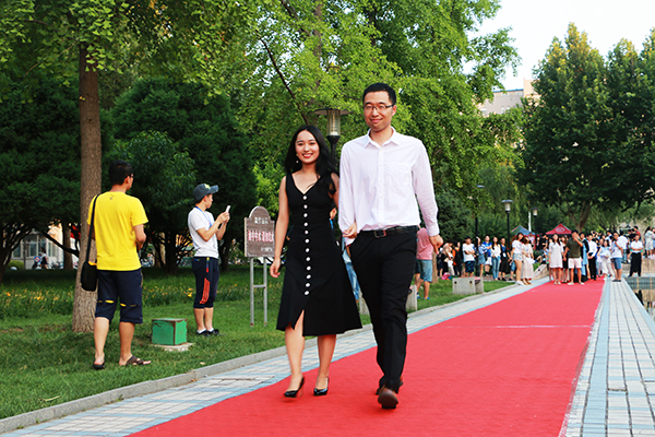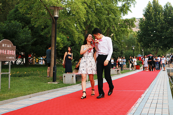 本屆紅毯禮分為“與君之恩”師生篇、“與君相見”特別篇、“與君相戀”愛情篇、“與君相遇”友情篇4個篇章。在師生篇中,各學(xué)院負(fù)責(zé)人攜畢業(yè)生代表依次走上紅毯并送上深情祝福,向圓滿完成學(xué)業(yè)的畢業(yè)生們表示祝賀,希望畢業(yè)生們發(fā)揚(yáng)石大優(yōu)良傳統(tǒng),腳踏實地、努力工作、報效祖國、回報社會,在不同的工作崗位上創(chuàng)造屬于自己的精彩人生;在特別篇中,宿舍管理人員、食堂師傅、安保人員、校醫(yī)院醫(yī)生、圖書管理員等走上紅毯,引得現(xiàn)場觀眾的熱烈掌聲;在愛情篇中,畢業(yè)生情侶們或十指緊扣,或深情對視,展現(xiàn)了校園愛情的甜蜜與幸福;在友情篇中,閨蜜同行或同學(xué)相伴,面對即將作別的大學(xué)生活,他們不訴離殤,將最甜美的笑容留在了石大,定格在最美的青春里。