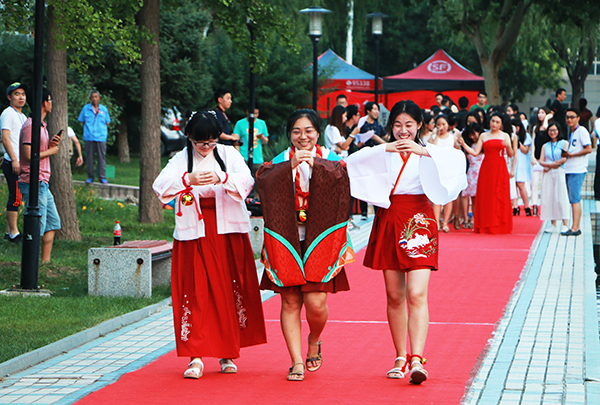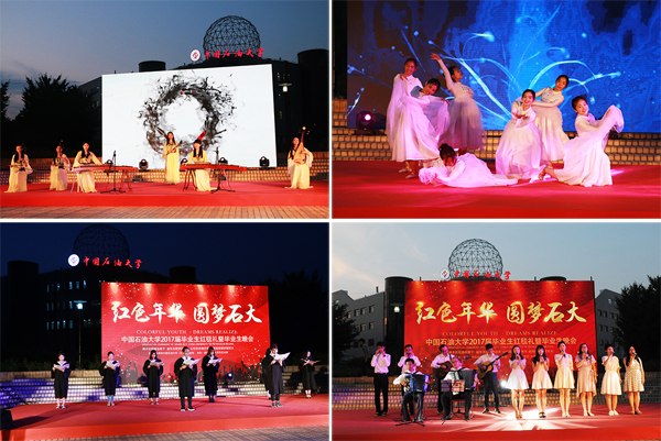 在畢業(yè)生晚會中,無論是小合唱《山楂樹》,唯美的舞蹈《清清克拉瑪依河》,還是民樂合奏《雨碎江南》,歌曲《一個人的北京》、《再見》,亦或是學(xué)生改編的石大版《成都》,畢業(yè)生創(chuàng)作的詩朗誦《昌平小事》,都表達(dá)了學(xué)生對母校的依依不舍之情。