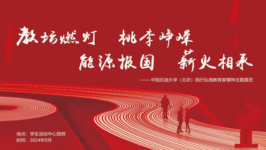 教壇燃燈,桃李崢嶸。為深入貫徹落實習(xí)近平總書記關(guān)于教育的重要論述,大力弘揚(yáng)和踐行教育家精神,在迎來第40個教師節(jié)的金秋時節(jié),中石大舉辦“教壇燃燈,桃李崢嶸,能源報國,薪火相承”踐行弘揚(yáng)教育家精神主題展覽。9月10日,主題展覽在學(xué)校學(xué)生活動中心西側(cè)正式開展。