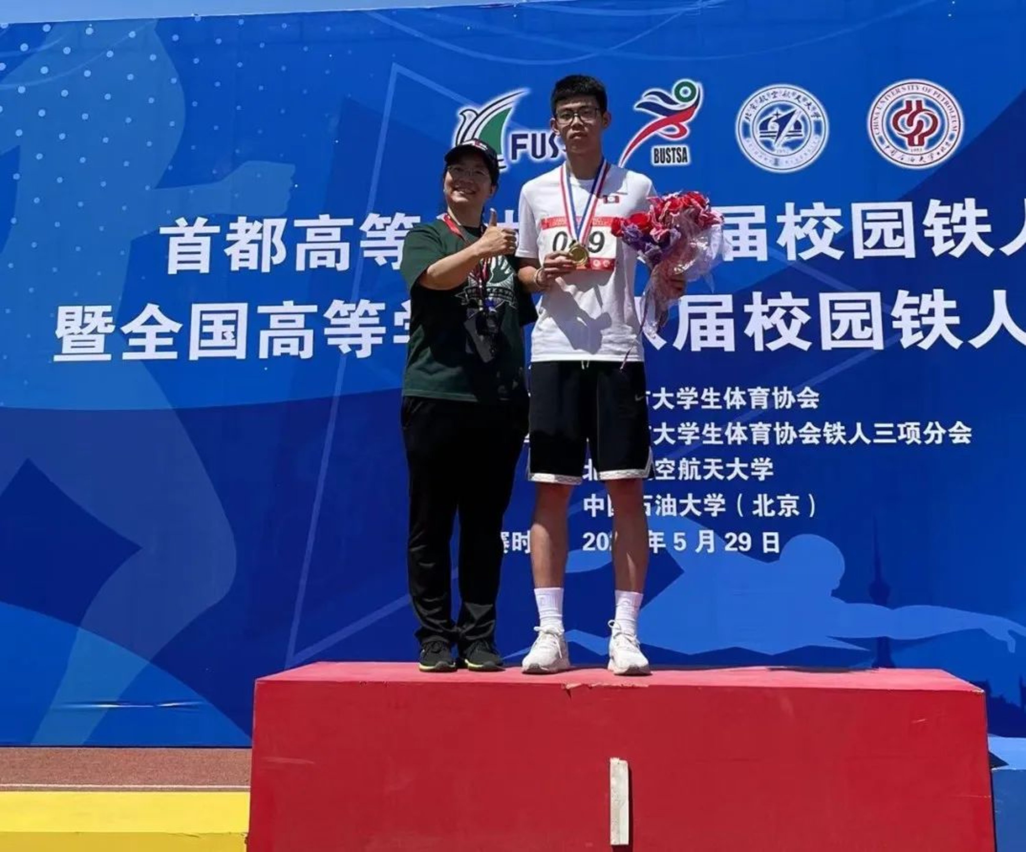 團支部德育、體育平均分均位列年級第一,文體活動參與率100%。支部成員獲首都高等學(xué)校“鷲峰杯”越野比賽北京市第六名、“紀念一二?九”長跑比賽全校亞軍,第十二屆“聲聲入影”配音大賽學(xué)校第二名、學(xué)校“頌百年偉業(yè),書時代新篇”書法比賽三等獎等獎項。其中劉瑞恒作為學(xué)校代表參加全國高等學(xué)校第八屆校園鐵人三項邀請賽,取得全國第二名、北京市第一名的優(yōu)異成績,為校爭光。