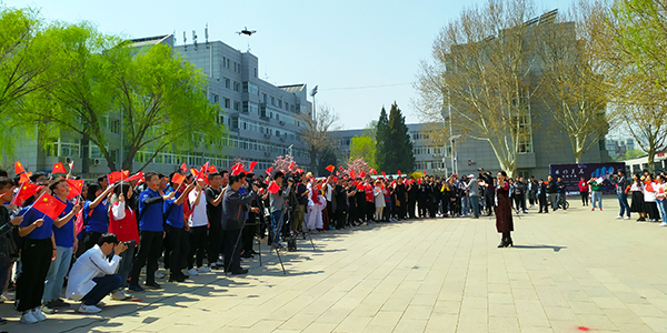 “我和我的祖國,一刻也不能分割。無論我走到哪里,都流出一首贊歌……”石大的四月天,春和景明,草木葳蕤。4日中午,青年園南廣場上,楊柳依依,玉蘭盛開,“我的祖國我奮斗 我為祖國獻石油”中國石油大學慶祝中華人民共和國成立70周年的紅色背景板在陽光照耀下熠熠生輝。正值下課時間,石大師生從校園各個方向匯聚到南廣場上,共同唱響《我和我的祖國》《我為祖國獻石油》,嘹亮的歌聲、激昂的旋律響徹石大。石大人用快閃的方式來祝福祖國,表達對祖國的無限眷戀,對石油事業的拳拳之情,也標志著中國石油大學慶祝中華人民共和國成立70周年主題教育活動正式啟動。