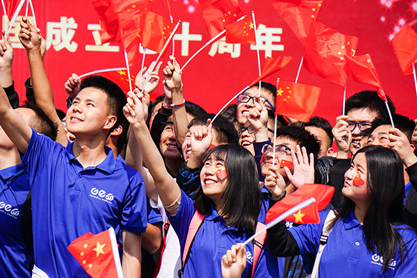 非常規油氣科學技術研究院的趙傳峰老師活動結束后仍然難掩激動:“今天我們歡聚在這里為祖國慶生,自豪、驕傲、激動!無論何時何地,都想為祖國唱響贊歌,歌唱祖國的每一座山每一條河!”后勤管理處副處長張自強也在活動現場,他認為用快閃的形式歌唱祖國,能夠激發師生的愛國熱情,使每個人更加努力地去建設國家,也能夠讓石大師生更好地踐行“我為祖國獻石油”。網絡與繼續教育學院民族預科班哈薩克族學生巴合爾古麗·哈力和藏族學生謝辛卓說:“當唱起《我和我的祖國》的時候,心中涌動的是對祖國的熱愛,對祖國的祝福。當唱起校歌《我為祖國獻石油》時,體會到的是石油人艱苦奮斗、為石油行業奉獻青春的熱情。五十六個民族是一家,大家互相學習,一起發展,我們的國家就會變得越來越強大。”“聽到《我和我的祖國》的旋律響起來,我就跑到南廣場加入了他們。”地球科學學院2018級學生李佳軒連說帶比劃,“我們要用奮斗的青春詮釋愛國的深情。”