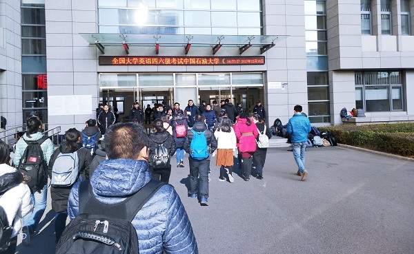 12月16日,2017年下半年全國大學英語四、六級中國石油大學(北京)考點考試順利結束。此次四、六級考試石大共有7069名學生報名參加,突破歷史新高;其中四級報考人數為3615人,分為121個考場;六級報考人數為3454人,分為116個考場。全校300多名教職工參與監考和考試保障服務工作。