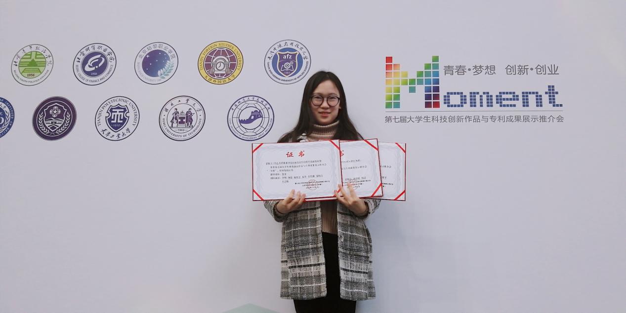 張曉潔同學成績優異,科研能力突出,積極參加“一種熒光響應的自愈性水凝膠及其制備方法”課題研究工作,并作為研究者和參與者于《Materials Horizons》(SCI一區)發表文章1篇,獲國家發明專利1項(已獲公開號),研究成果獲第七屆大學生科技創新作品與專利推介會二等獎,在第十屆“挑戰杯”首都大學生課外學術科技作品競賽中獲北京市二等獎;她積極參加創新創業活動,并作為水凝科技團隊的核心成員,在第五屆中國“互聯網+”大學生創新創業大賽中獲北京賽區二等獎、北京市高校大學生優秀創業團隊一等獎。