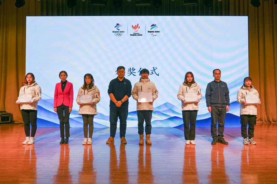 張吉昌、劉漪、張濤為冬奧志愿知識大PK第一名獲獎學生頒獎