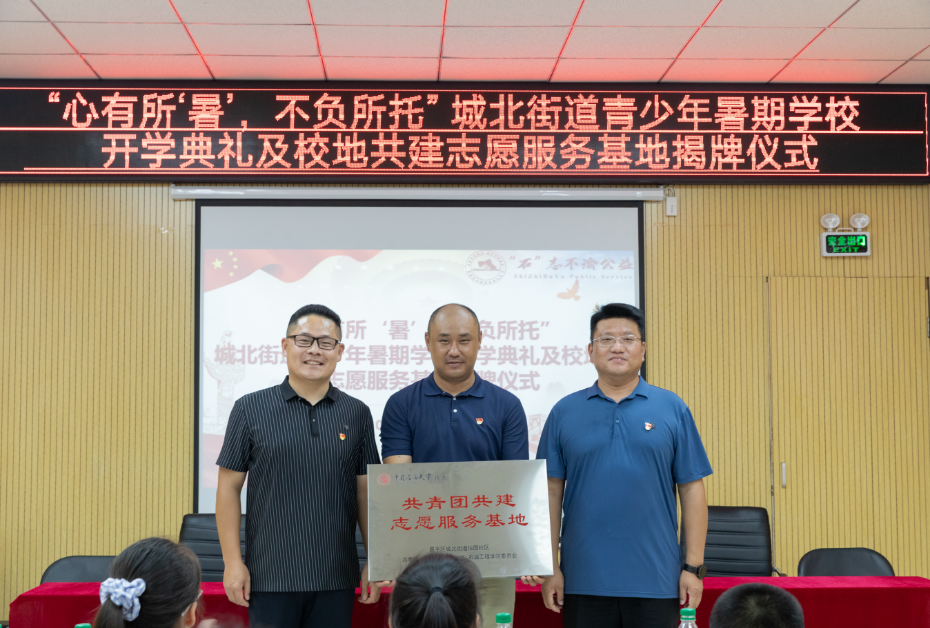 8月12日上午,“心有所‘暑’,不負所托”昌平區城北街道青少年暑期學校開學典禮及校地共建志愿服務基地揭牌儀式在城北街道怡園社區舉行。城北街道黨工委副書記趙國宇、怡園社區黨總支書記趙志鵬,城北街道、怡園社區工作人員,中國石油大學(北京)石油工程學院學生工作負責人、“石”志不渝社會實踐團、“鐵人先鋒”社會實踐團全體成員,參加暑期學校的學生及家長代表參加活動。活動由怡園社區團委委員王子凡主持。