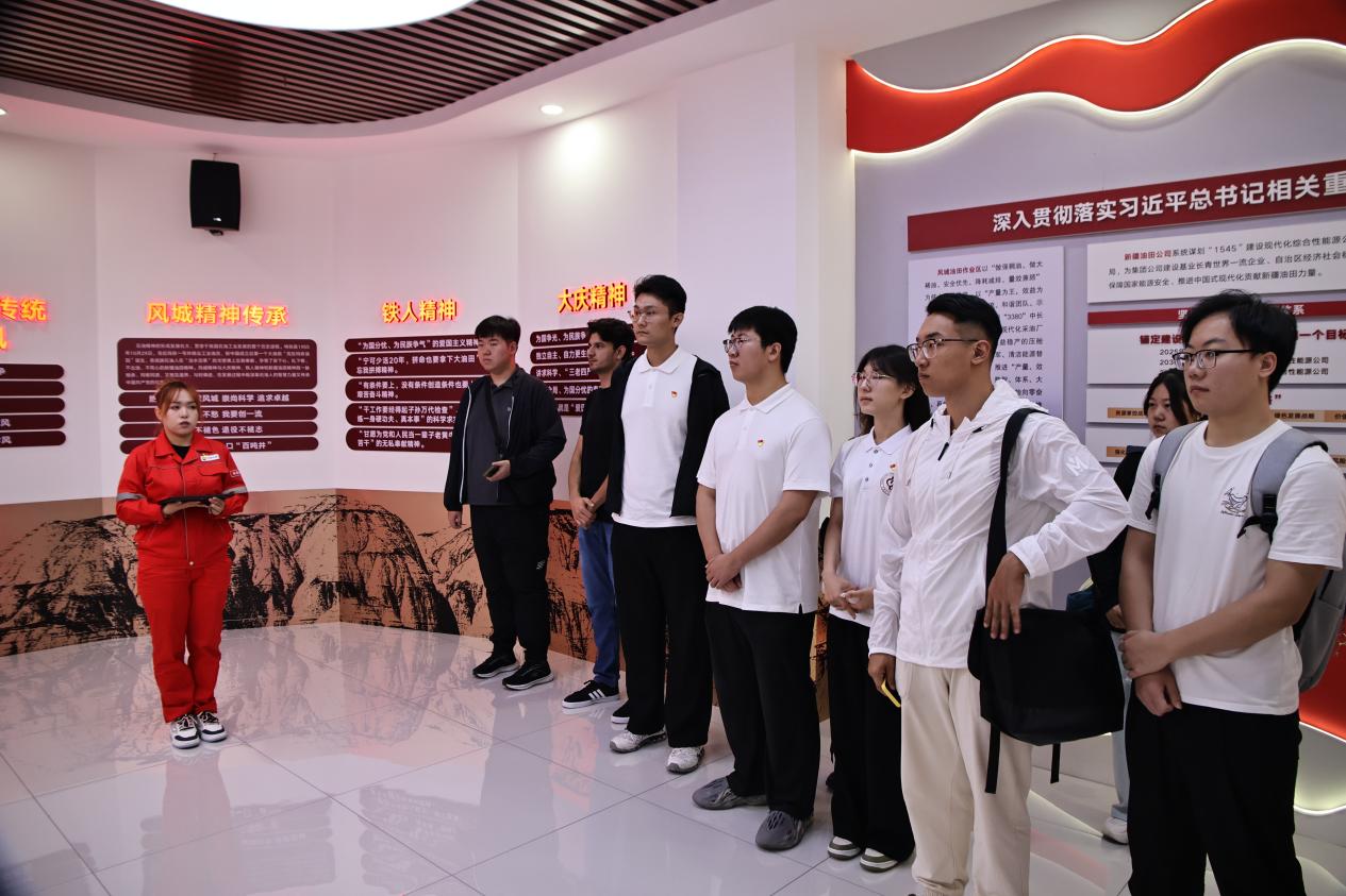 在風城油田作業區和101窯洞,實踐團成員們深入了解了老一輩石油工人的工作和生活環境。通過觀看影片、仿真模型,成員們沉浸式地體驗了“安下心、扎下根、不出油、不死心”的新疆油田精神。窯洞內保留下來的醫務室、圖書館、會議室以及宿舍等生活區域,讓成員們仿佛回到了那個激情燃燒的歲月,親耳聆聽了石油先輩們戰天斗地、無私奉獻的感人故事,更加堅定了他們為石油事業貢獻力量的決心。