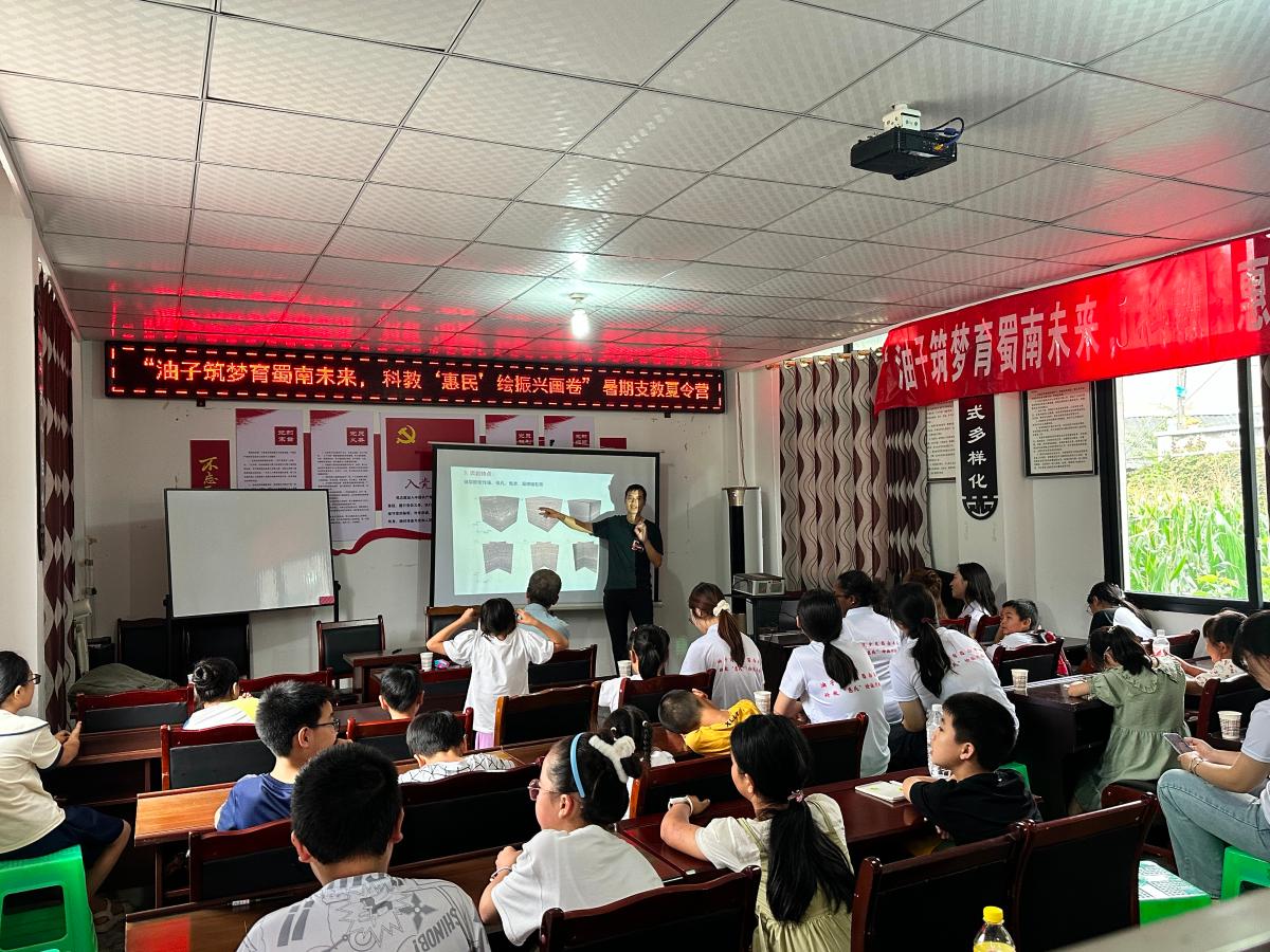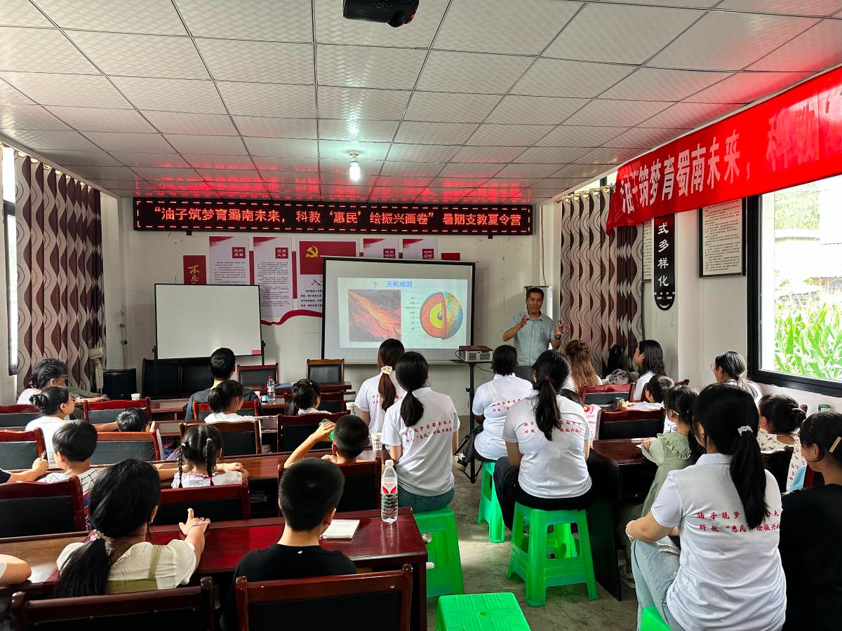 當日下午,“油子筑夢育蜀南未來,科教惠民繪振興畫卷”暑期支教夏令營開營儀式舉行。學校師生、珙縣底洞鎮政府相關人員、惠民村34名學生參加儀式。中石大教授團隊為惠民村的孩子們科普了地球科學相關知識,教授陳踐發講解了“石油的形成及其在日常生活中的用途”,副教授馬勇介紹了珙縣當地富存的“頁巖及頁巖氣”相關知識,特邀教師高峰帶來了一堂生動的陶笛音樂課。
