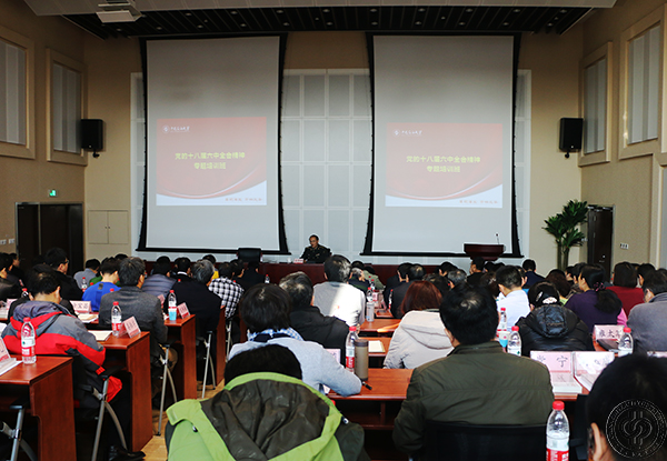11月24日下午,中國石油大學在主樓C308會議室舉辦處級以上干部學習貫徹十八屆六中全會精神專題培訓班。全體校領導、處級干部參加培訓。黨委副書記雷玉江主持會議。