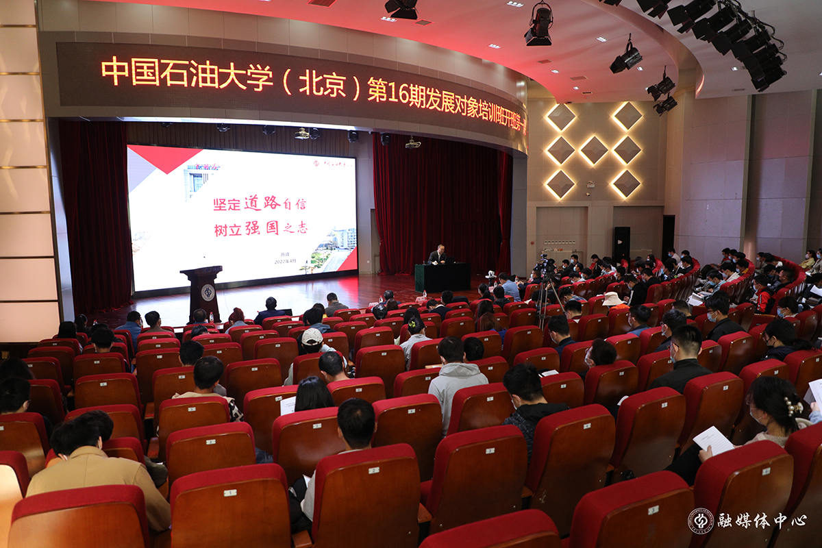 為切實加強新形勢下黨員發展對象的教育培養工作,持續深化黨史學習教育成果,幫助廣大青年學生錘煉提升黨性修養,堅定政治理想信念,4月16日上午,中國石油大學(北京)黨委書記陳峰以“堅定道路自信,樹立強國之志”為題,為第16期發展對象培訓班講授開班第一課。校本部和克拉瑪依校區的562名黨員發展對象參加培訓。