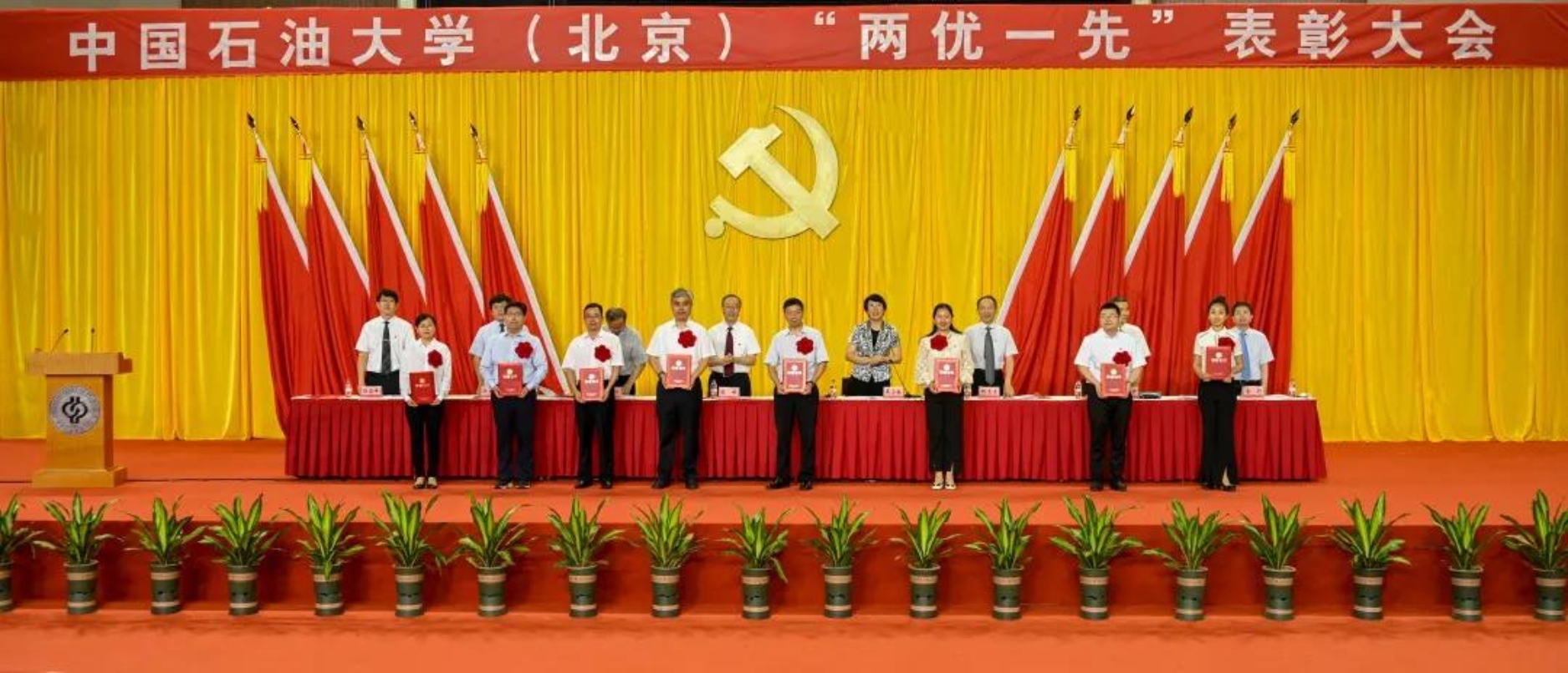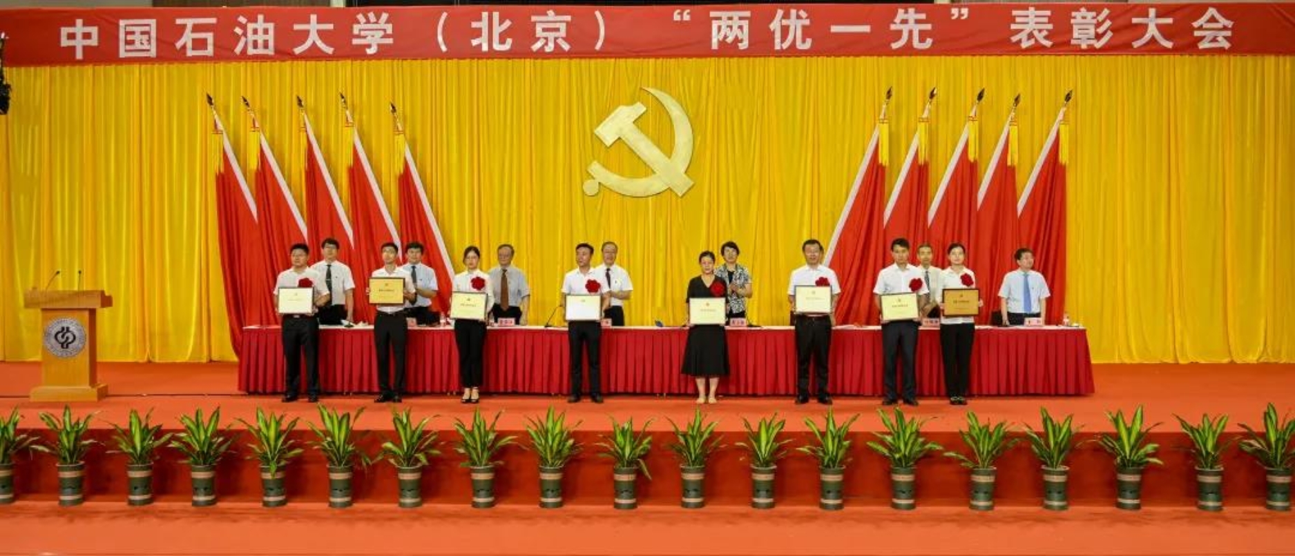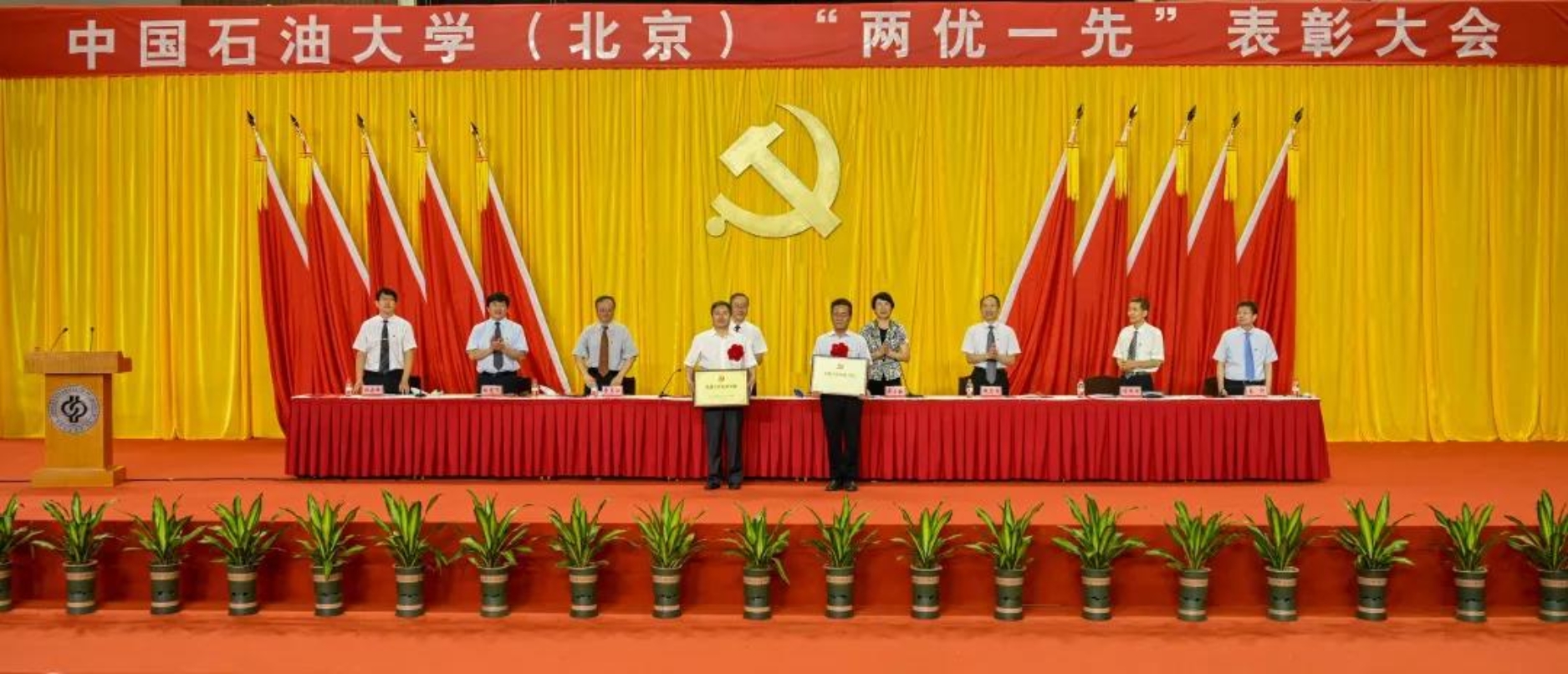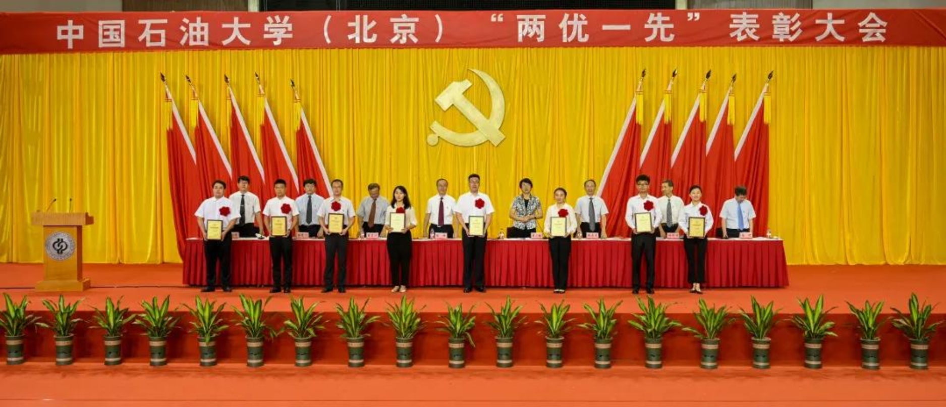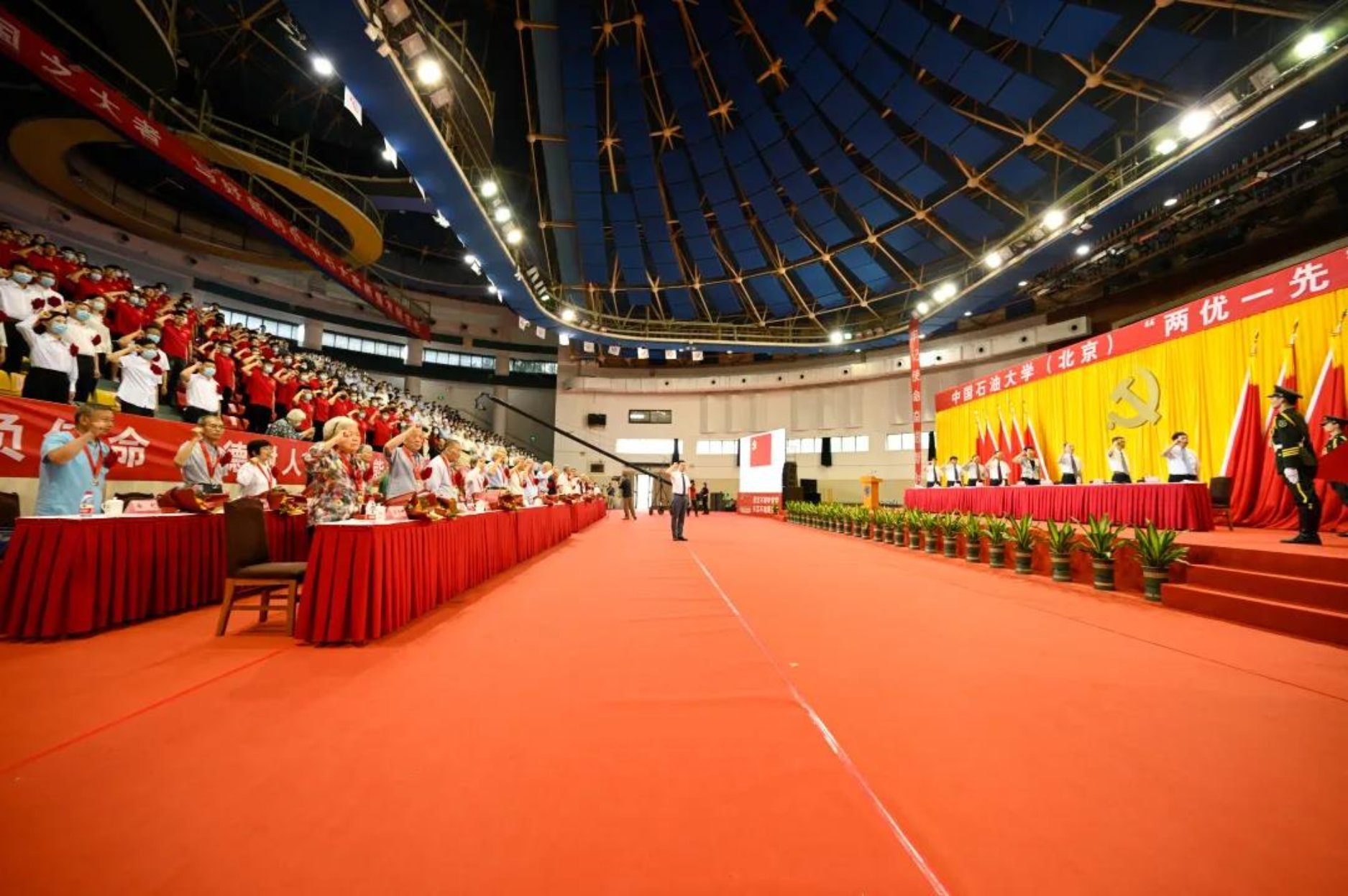 初心如磐,使命在肩。6月29日下午,中國(guó)石油大學(xué)在體育館召開(kāi)“兩優(yōu)一先”表彰大會(huì),熱烈慶祝中國(guó)共產(chǎn)黨成立100周年,隆重表彰先進(jìn)集體和個(gè)人。校領(lǐng)導(dǎo)陳峰、吳小林、雷玉江、鮑志東、韓克飛、付恒升、韓尚峰、金衍,校長(zhǎng)助理劉植昌,“光榮在黨50年”老黨員代表,全體先進(jìn)黨組織書(shū)記、優(yōu)秀共產(chǎn)黨員和優(yōu)秀黨務(wù)工作者,其他受表彰單位和個(gè)人代表,全體處級(jí)干部、預(yù)備黨員代表、師生黨員代表等近460余人參加表彰大會(huì)。副校長(zhǎng)陳大恩和克拉瑪依校區(qū)師生黨員代表通過(guò)視頻連線方式參加了表彰大會(huì)。會(huì)議由校長(zhǎng)、黨委副書(shū)記吳小林主持。
