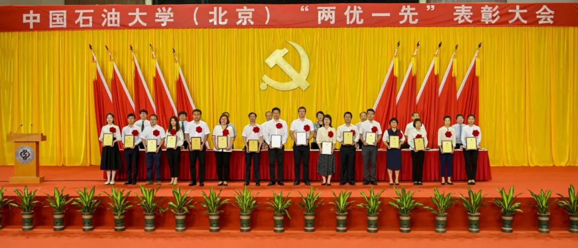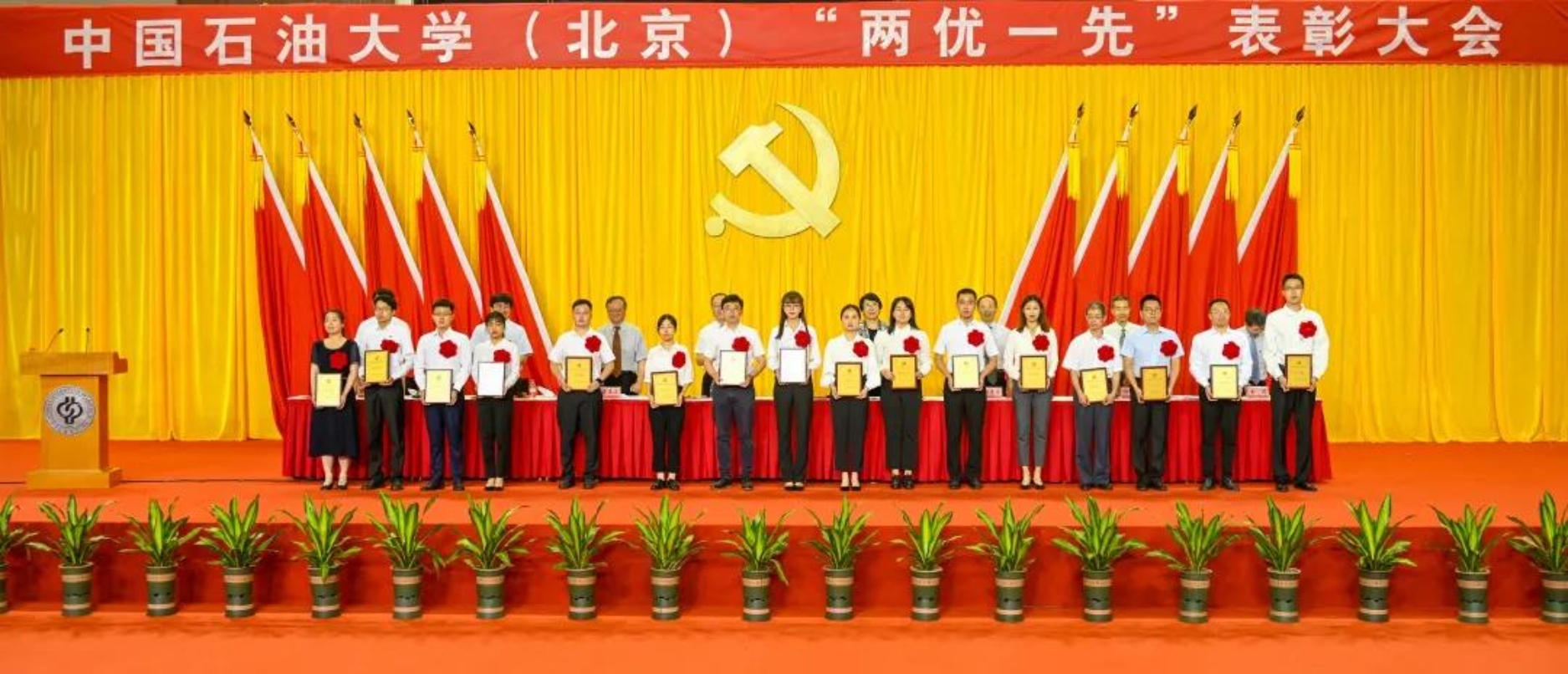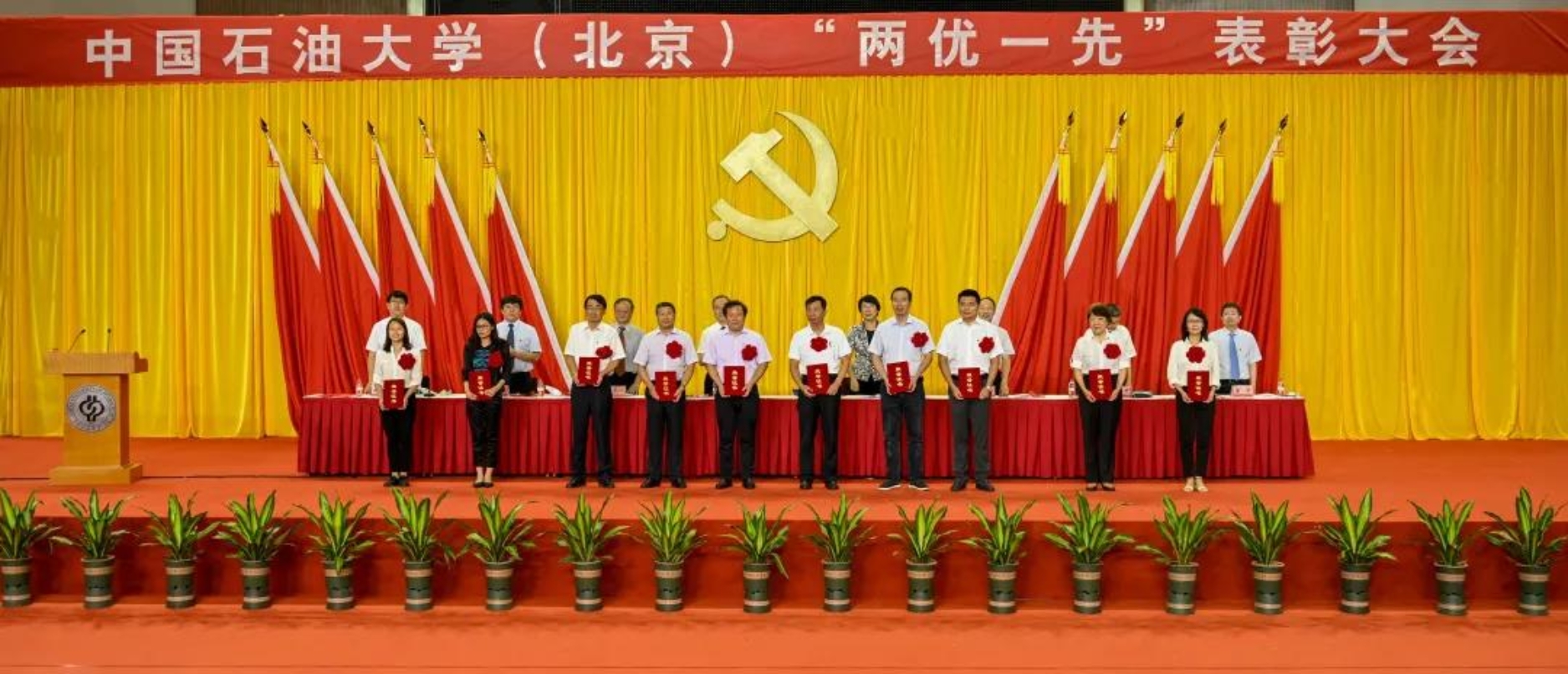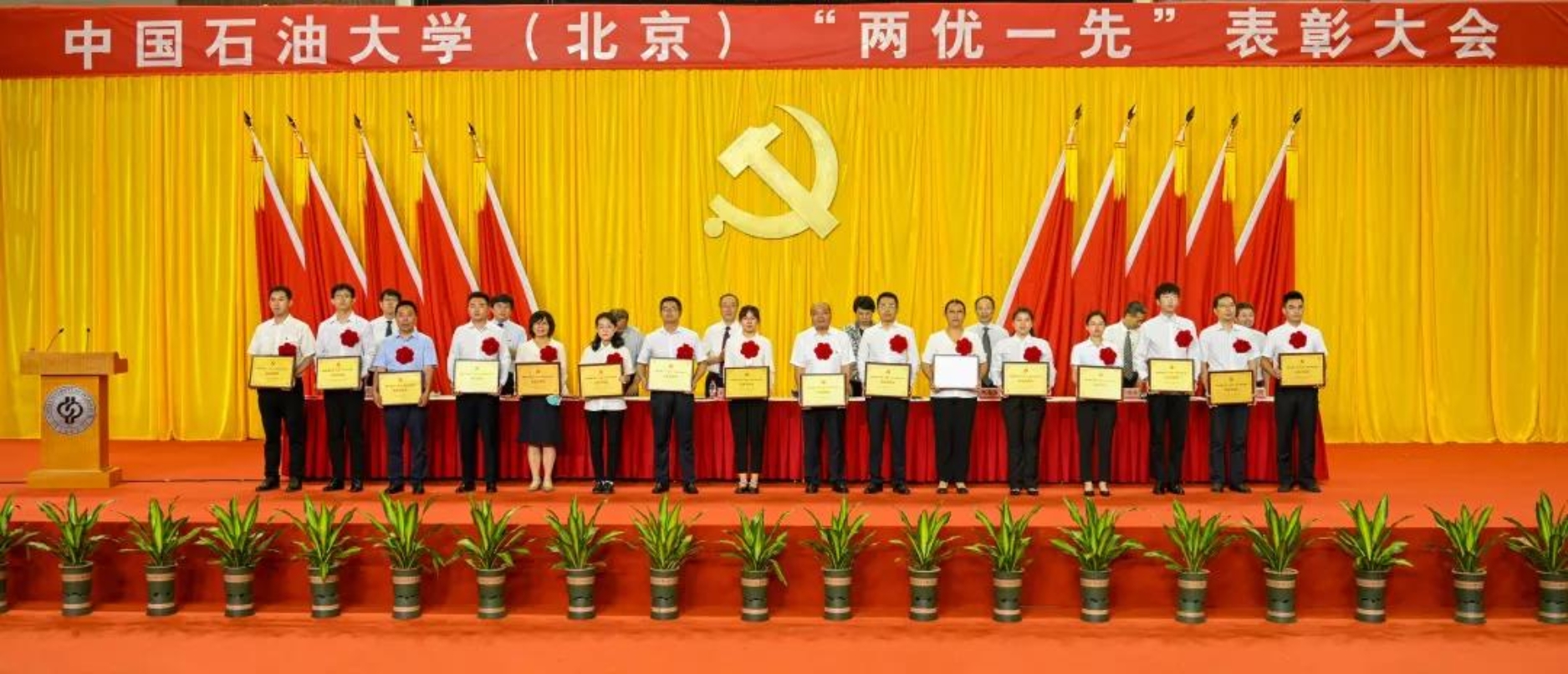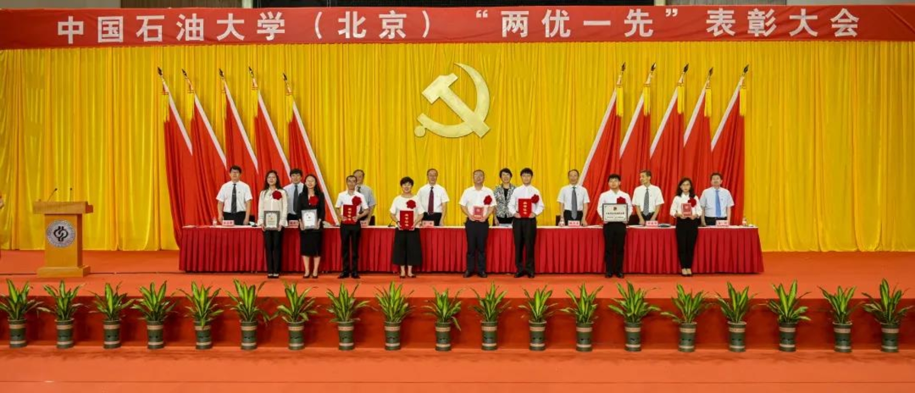 初心如磐,使命在肩。6月29日下午,中國(guó)石油大學(xué)在體育館召開(kāi)“兩優(yōu)一先”表彰大會(huì),熱烈慶祝中國(guó)共產(chǎn)黨成立100周年,隆重表彰先進(jìn)集體和個(gè)人。校領(lǐng)導(dǎo)陳峰、吳小林、雷玉江、鮑志東、韓克飛、付恒升、韓尚峰、金衍,校長(zhǎng)助理劉植昌,“光榮在黨50年”老黨員代表,全體先進(jìn)黨組織書(shū)記、優(yōu)秀共產(chǎn)黨員和優(yōu)秀黨務(wù)工作者,其他受表彰單位和個(gè)人代表,全體處級(jí)干部、預(yù)備黨員代表、師生黨員代表等近460余人參加表彰大會(huì)。副校長(zhǎng)陳大恩和克拉瑪依校區(qū)師生黨員代表通過(guò)視頻連線方式參加了表彰大會(huì)。會(huì)議由校長(zhǎng)、黨委副書(shū)記吳小林主持。
