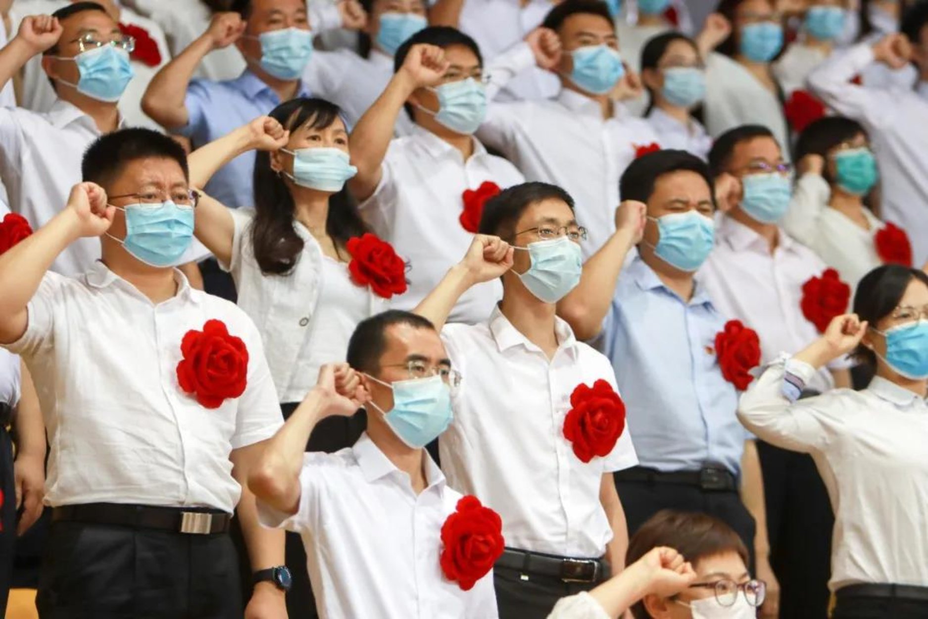 大會(huì)在全體參會(huì)人員合唱《沒(méi)有共產(chǎn)黨就沒(méi)有新中國(guó)》《歌唱祖國(guó)》中結(jié)束。