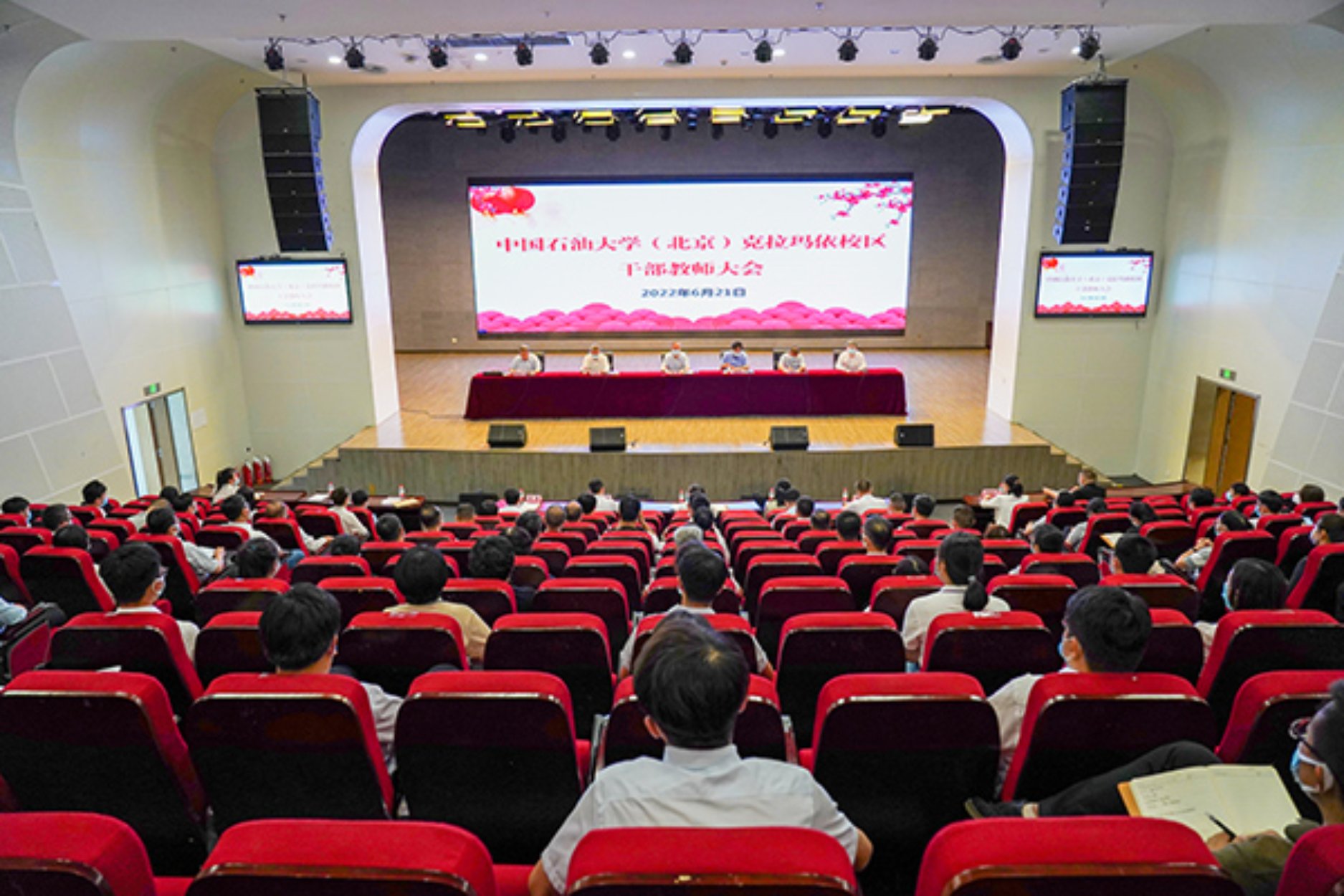 6月21日下午,中國石油大學(北京)召開克拉瑪依校區干部教師大會,宣布學校黨委關于校區有關領導同志任免的決定。學校黨委書記陳峰,克拉瑪依市委書記趙文泉、克拉瑪依市委常委馮述江,校區領導班子成員、科級以上干部、系(副)主任和教工黨支部書記參加會議。會議由學校黨委副書記雷玉江主持。